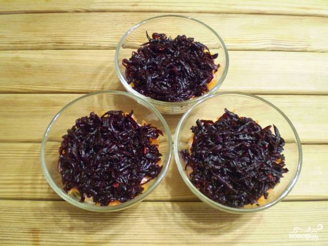 Далее — свекольный слой. Снова посолите.