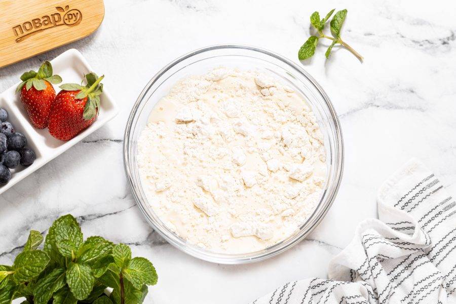 Пшеничную муку просейте в глубокую миску.