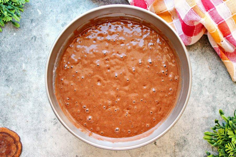 Быстро все перемешайте венчиком до однородного теста. Оно должно быть, как сметана средней густоты.
