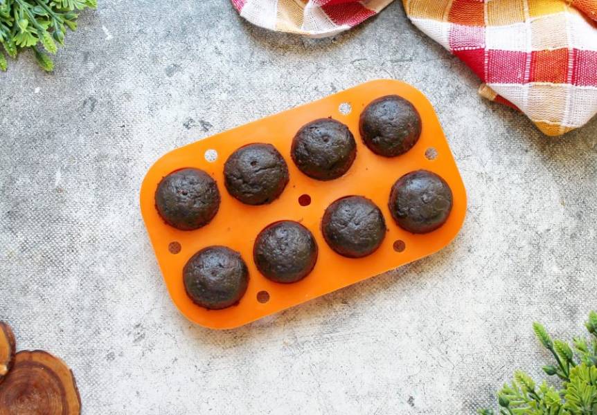 Разделите шоколадную массу на одинаковые части и сформируйте шарики. Они должны быть примерно как грецкие орехи. Уберите шарики в холодильник на 30-40 минут, чтобы они стали плотные. Чтобы они не потеряли форму их можно выложить в силиконовые формы полусфер.