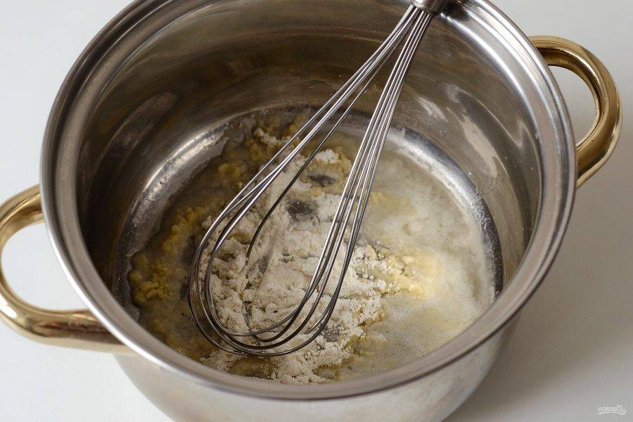 Для подливки обжарьте муку с растительным маслом до золотистого цвета.
