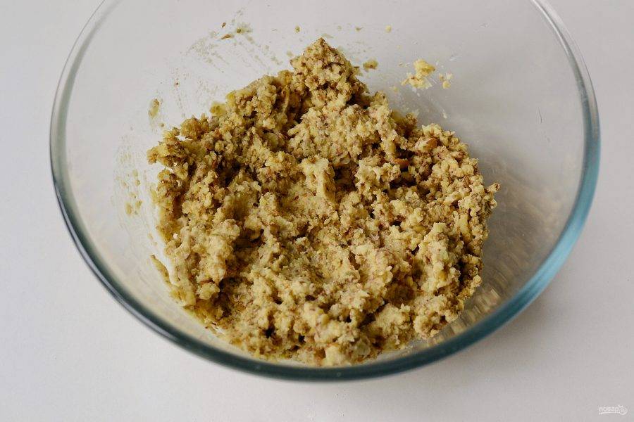 Измельчите чечевицу с луком и чесноком в блендере или мясорубке.