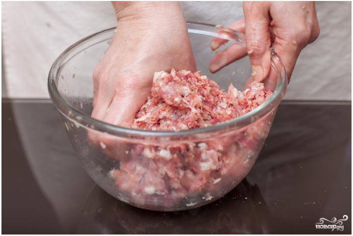 1. Свинину и говядину промойте, обсушите бумажными полотенцами (удалите жилы и пленки, если они есть) и пропустите через крупную решетку мясорубки или нарубите ножом на маленькие кусочки. Шпик нарежьте мелкими кубиками и отварите в маленьком количестве воды около пяти минут, смешайте его с мясным фаршем.