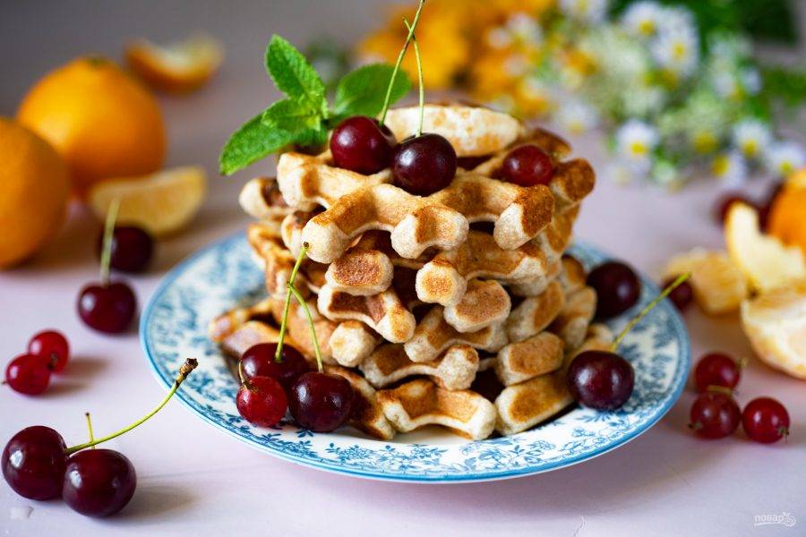 Подавайте готовые вафли к столу со свежими ягодами и кусочками фруктов. Приятного аппетита!