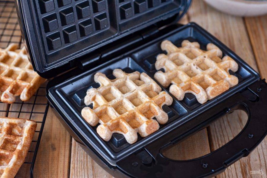 Закройте крышку вафельницы и выпекайте 2-3 минуты (или в соответствии с рекомендациями производителя вашего устройства) вафли.