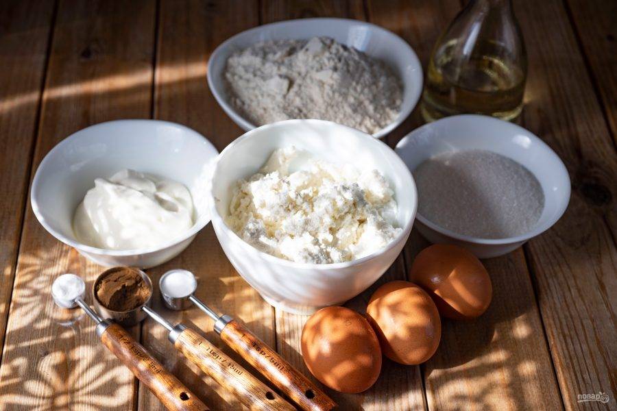 Все ингредиенты выложите на стол. Муку просейте заранее.