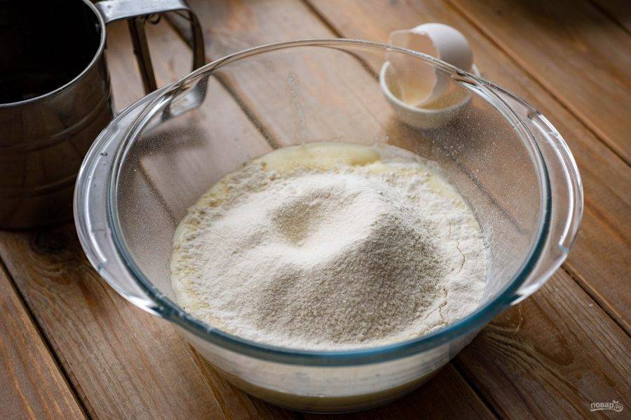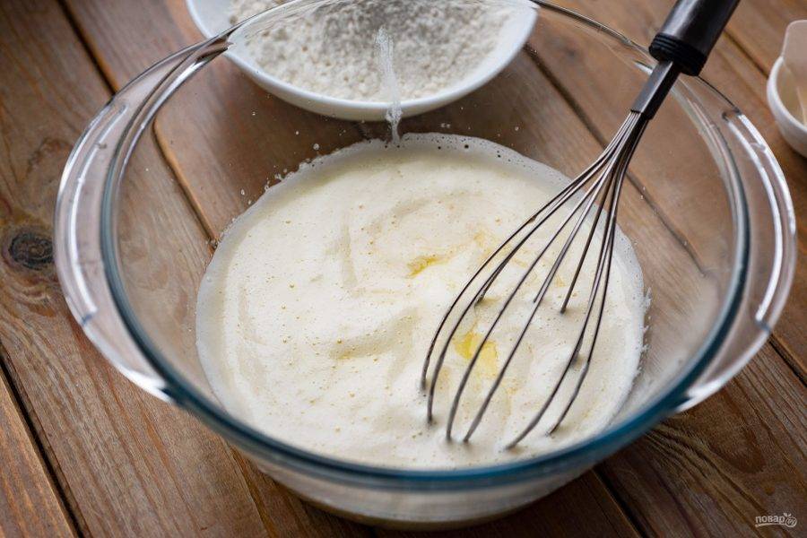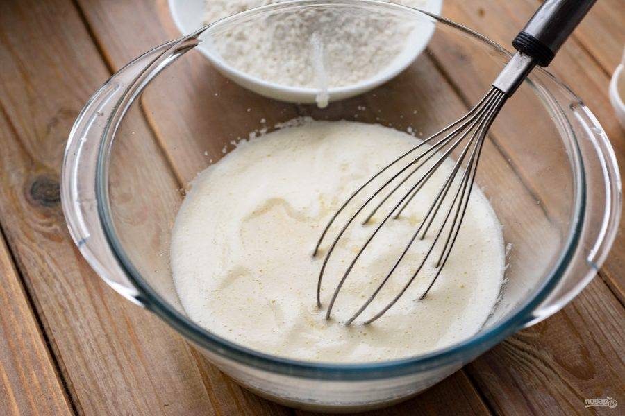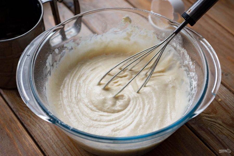 Перемешайте все венчиком до получения пышного теста, которое по консистенции достаточно густое, чтобы падать с ложки, а не стекать.