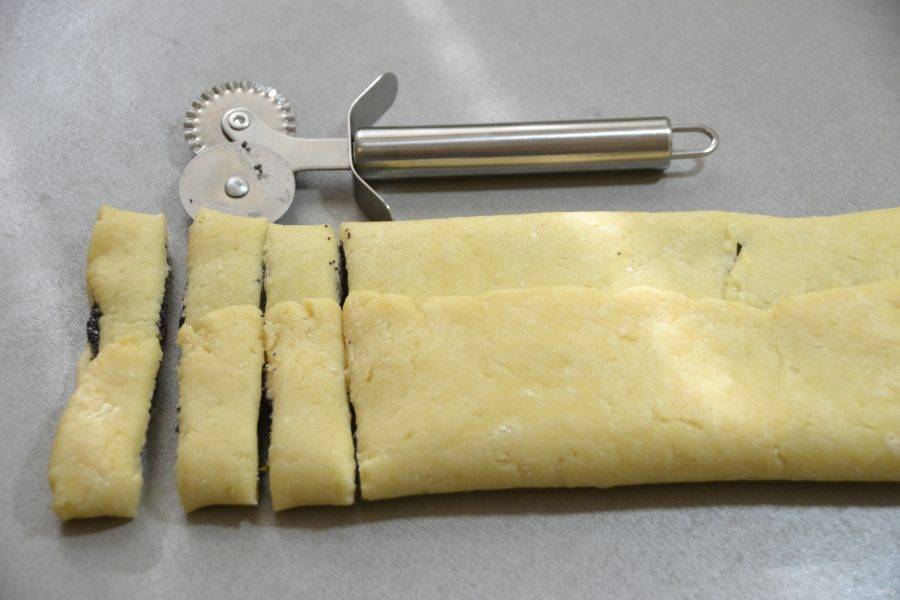 Отрезайте полоски теста шириной 1,5-2 см.