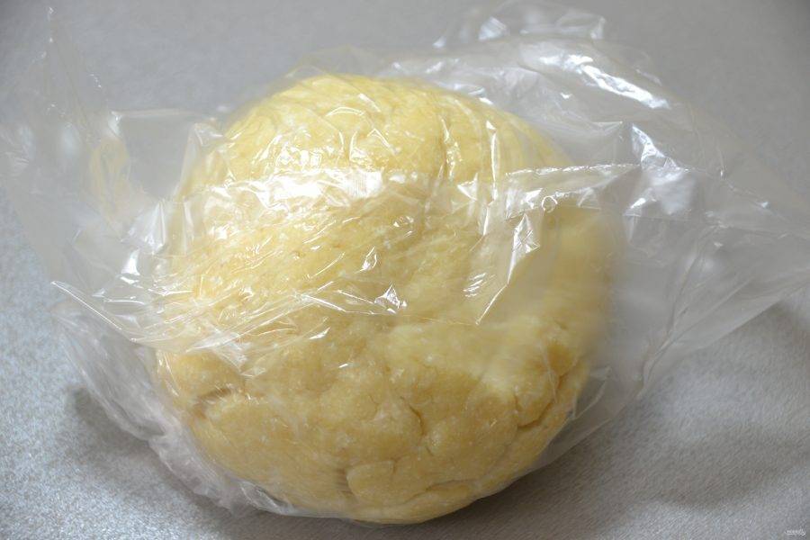 Скатайте тесто в шар и положите в пакет на 30-40 минут.