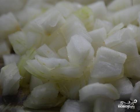 Морковь так же режем кубиками со стороной 1-1,5 сантиметра.