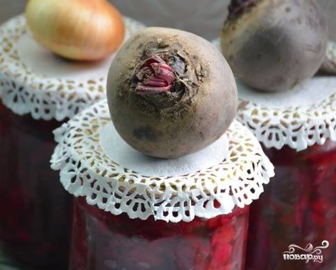 Когда банки остынут, отправляем их на хранение в подвал или другое холодное место, а зимой наслаждаемся отличным вкусом винегрета.