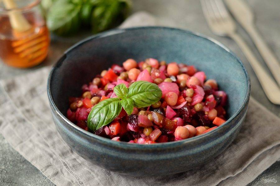 Винегрет с медово-горчичной заправкой готов. Приятного вам аппетита!
