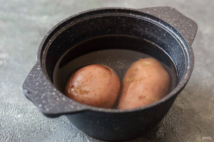 Картофель помойте, отварите в подсоленной воде до мягкости. На это уйдет примерно 35-40 минут.