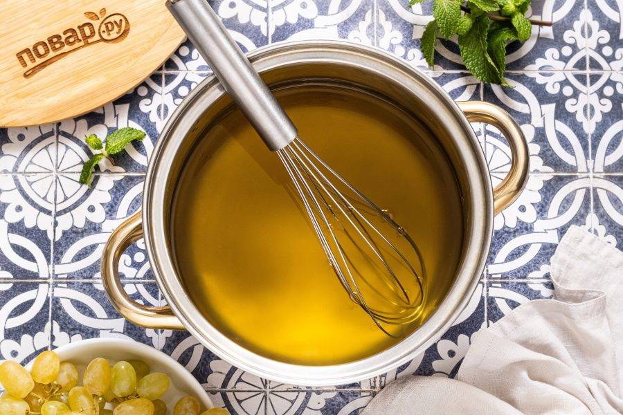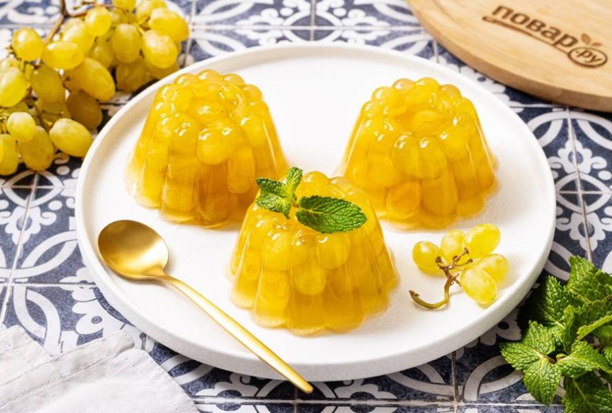 Если любить желейные десерты, то обязательно попробуйте виноград в чайном желе! Готовится такой десерт на основе зеленого чая и светлого винограда — сочетание очень гармоничное!