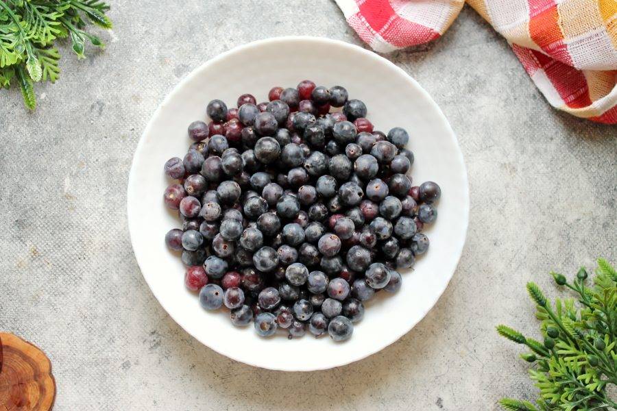 Ягоды винограда вымойте и откиньте на сито, чтобы стекла вода. Разложите гроздья на бумажное полотенце, чтобы виноград высох. Снимите виноградинки с веточек.