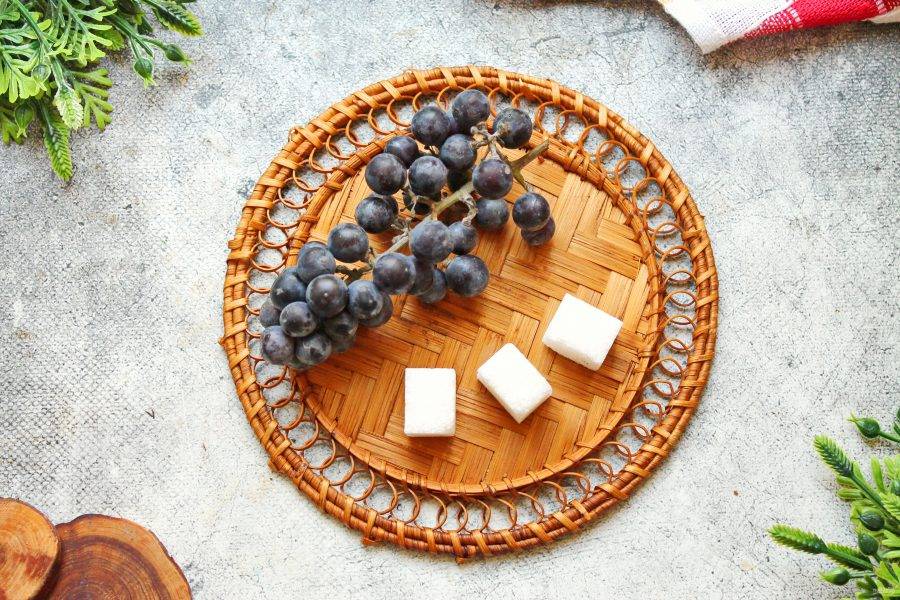 Подготовьте все необходимые ингредиенты для приготовления виноградного варенья пятиминутка. Банки и крышки вымойте в горячей воде с пищевой содой, сполосните и стерилизуйте банки любым удобным способом. Железные крышки прокипятите в течение пяти минут.