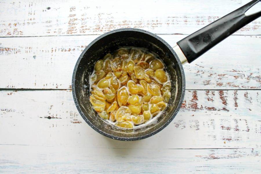 Варите виноград в вине на медленном огне в течение 40 минут.