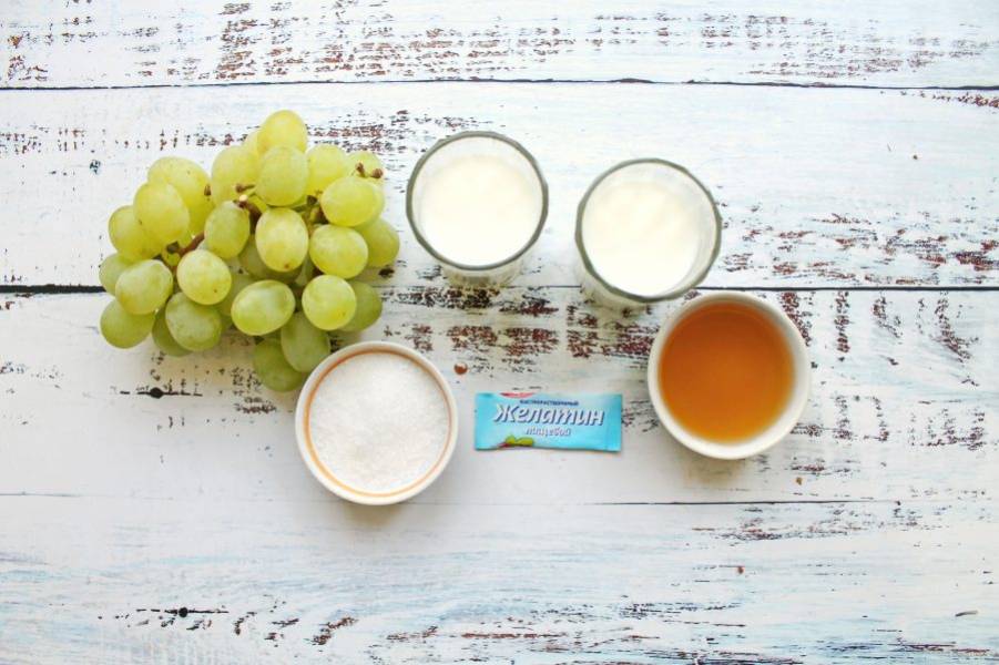 Подготовьте все необходимые ингредиенты для приготовления виноградного мусса. Виноград вымойте, обсушите и снимите ягоды с веточек.
