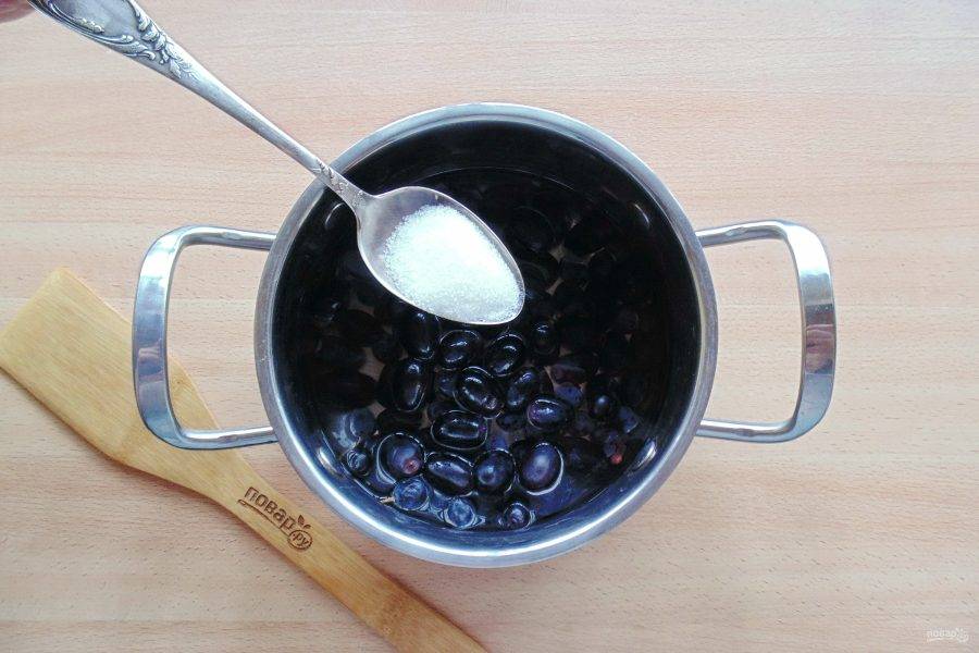Добавьте сахар, перемешайте и поставьте кастрюлю на плиту.