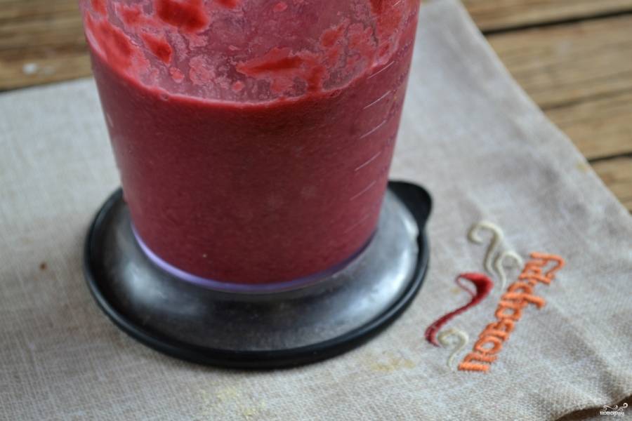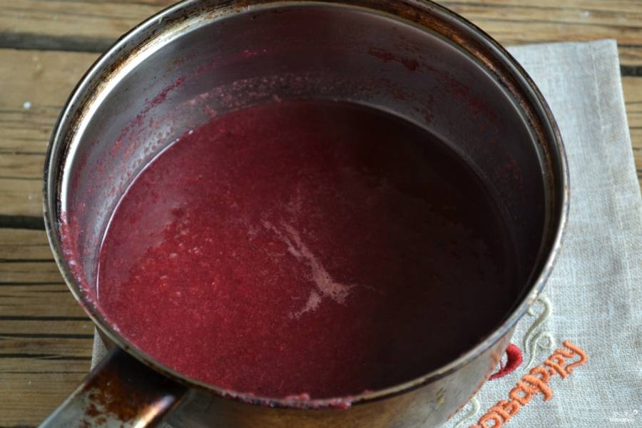 Измельченную вишню переложите в ковшик и доведите до кипения. Затем снимите с огня, добавьте набухший желатин и хорошо перемешайте.