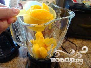 3. Поместите подготовленные фрукты в блендер. Если вы хотите получить особо нежный напиток, то предварительно смешайте их до того, как добавить лед.