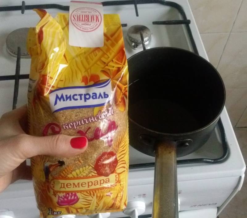 На печку ставим кастрюлю с водой и доводим до кипения. Берем наш коричневый сахар.