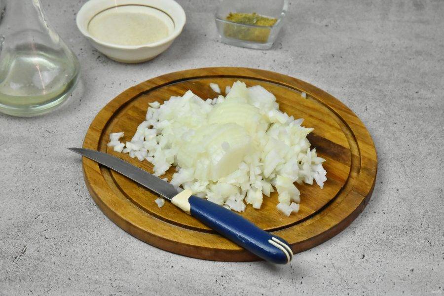 Луковицу очистите от шелухи и нарежьте кубиком.