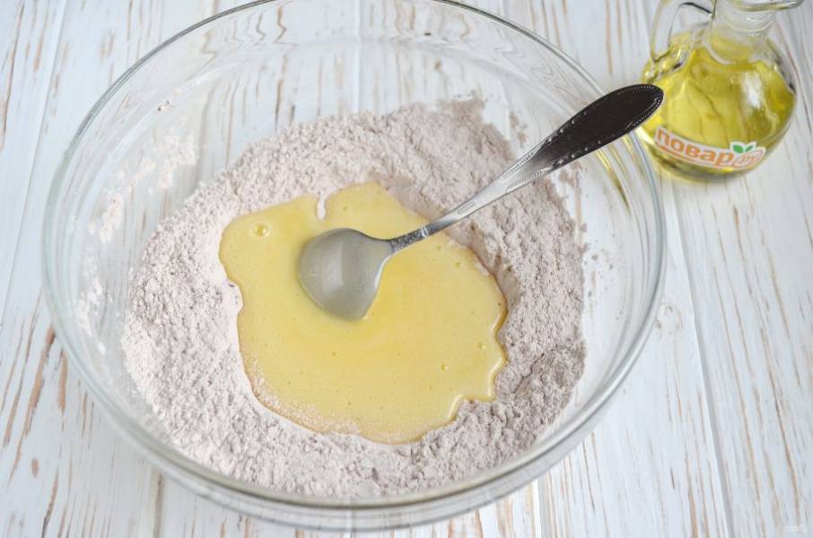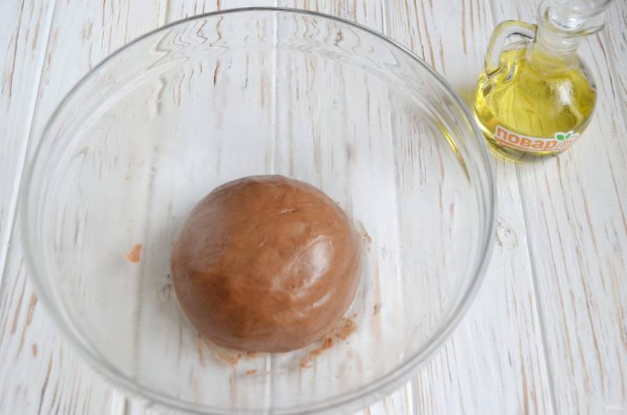 Замесите мягкое пластичное тесто. Оберните его пищевой пленкой и уберите в холодильник на 1 час.