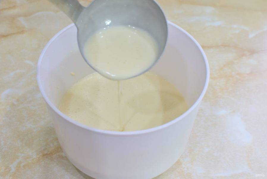Готовое тесто получается достаточно жидкое. Отрегулируйте консистенцию теста на свой вкус.