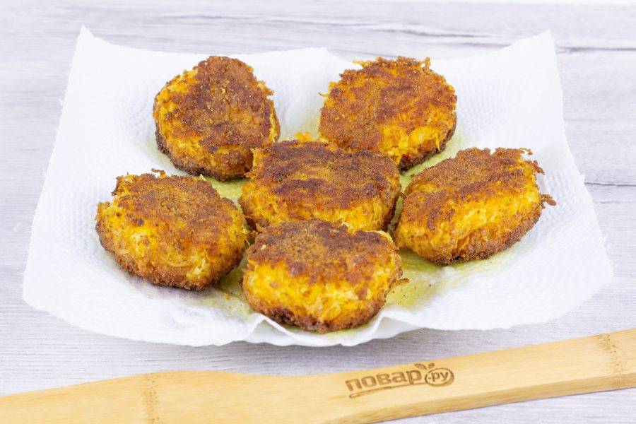 Обжаривайте котлетки в растительном масле на среднем огне по 3-5 минут с каждой стороны. Затем выложите на бумажное полотенце, чтобы убрать излишки масла.