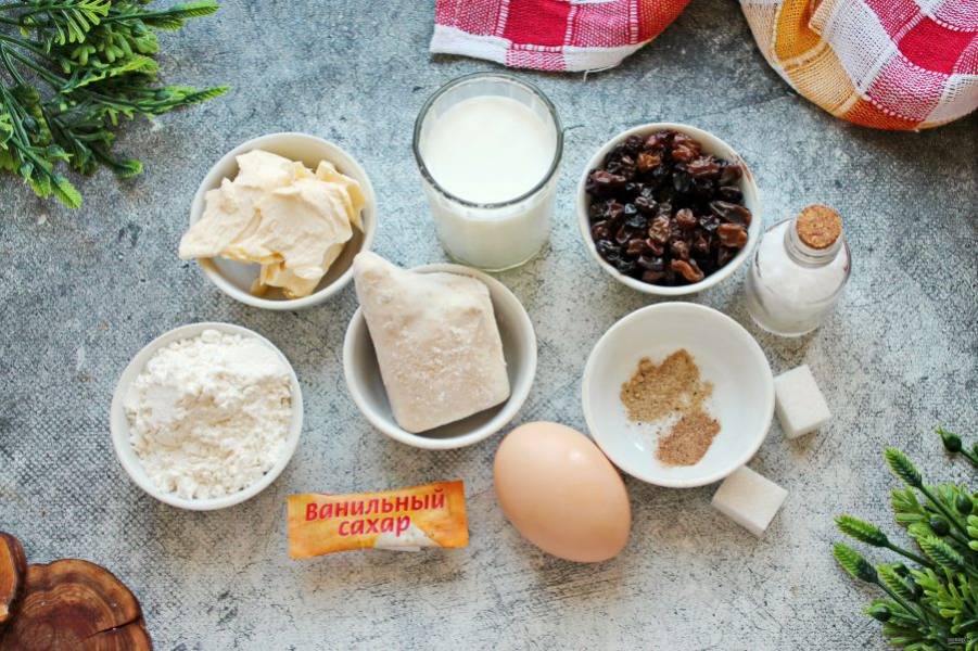 В тесто выложите просушенный изюм и перемешайте, обминая. Тесто покройте и дайте подойти еще в течение 30 минут.