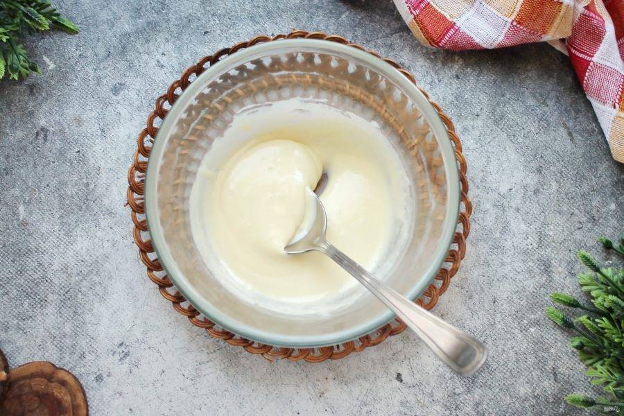 В теплом молоке разведите свежие дрожжи, добавьте одну столовую ложку сахара, 100 грамм муки и перемешайте до однородности.