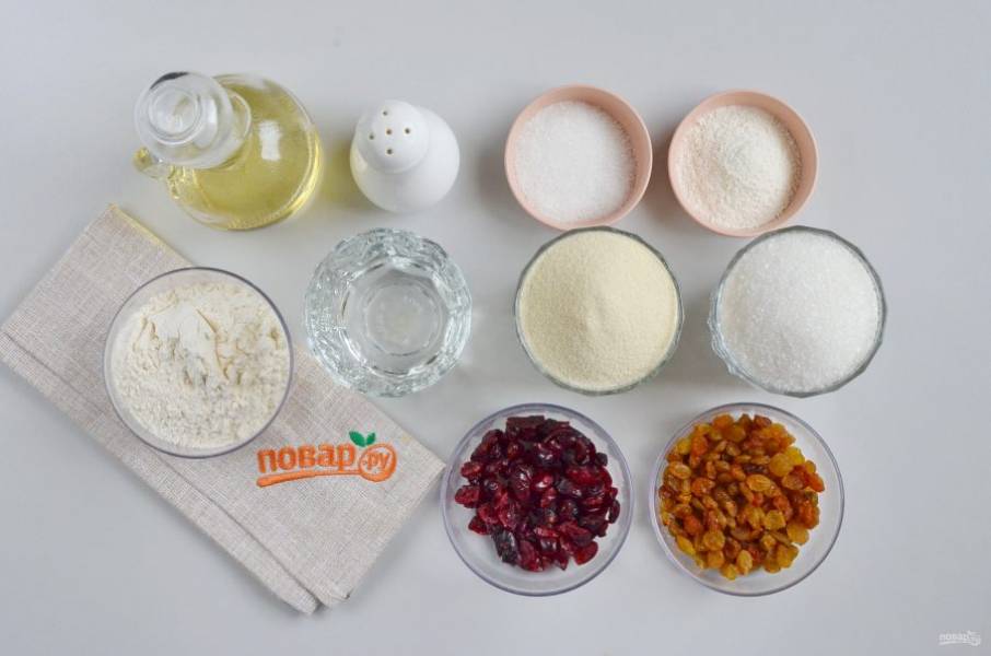 Замечательный манник на воде с добавлением сушеной клюквы и изюма, отлично подойдет для домашнего вечернего чаепития. Сухофрукты можно выбрать на свой вкус, я часто покупаю финики, курагу, клюкву.