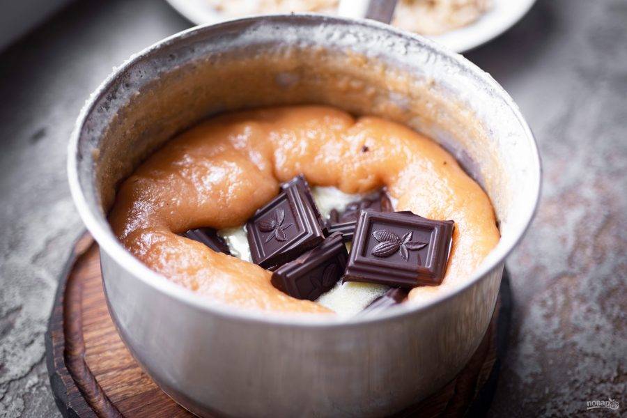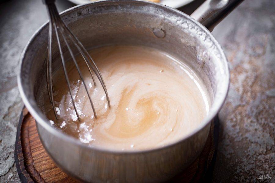 Смесь должна стать однородной и густой. Снимите сотейник с плиты.