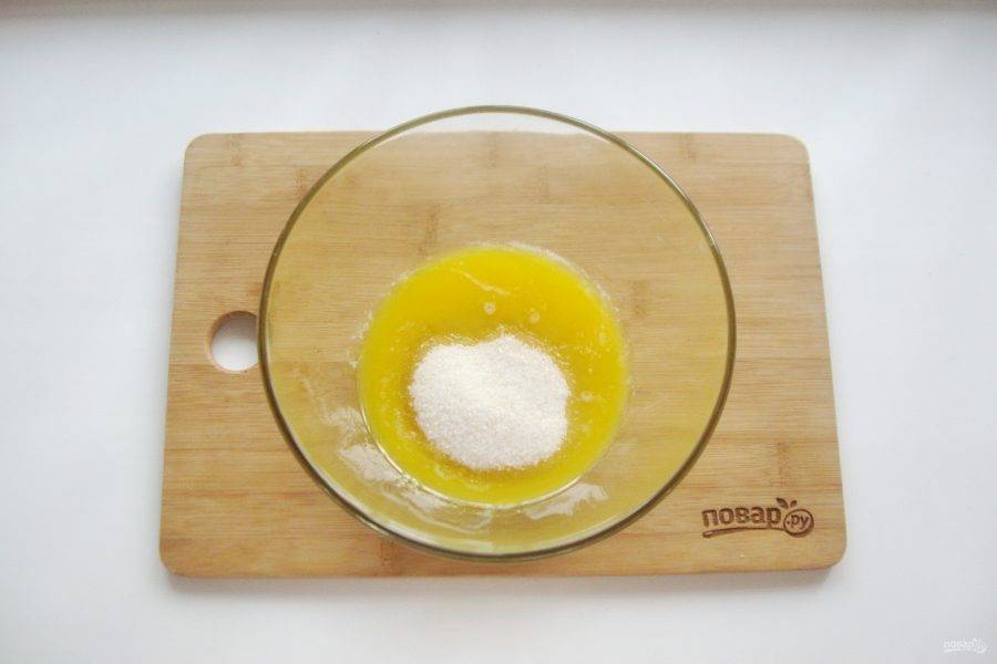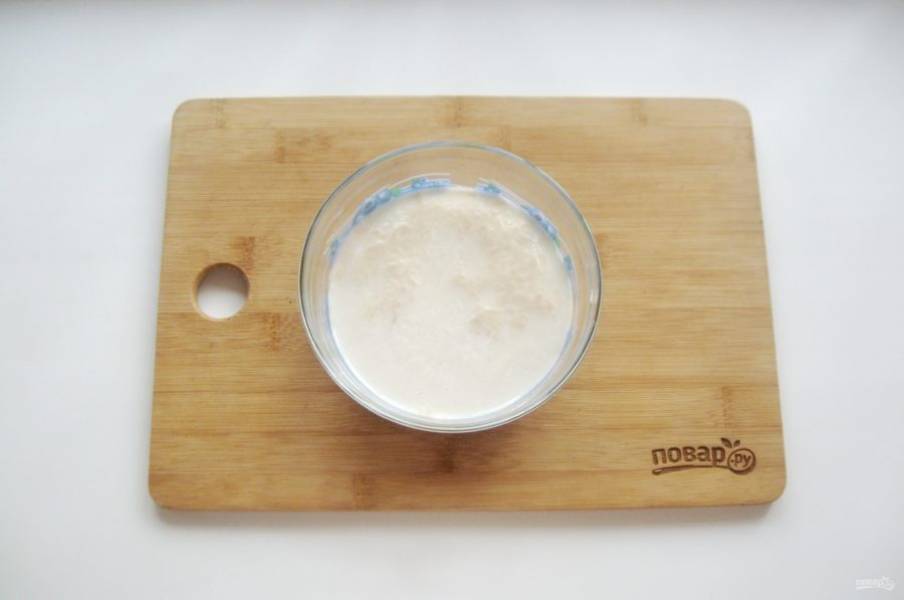 В мисочку налейте теплое молоко, добавьте дрожжи и столовую ложку сахара. Перемешайте и дайте постоять 15-20 минут, чтобы дрожжи активировались и вспенились.