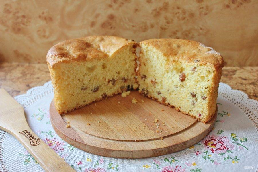 Когда тесто подойдет, добавьте изюм, который предварительно помойте и высушите. Перемешайте тесто с изюмом.
