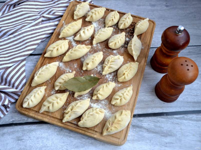 Готовые пельмени "гюрза" должны иметь продолговатую форму и фигурный защип сверху.