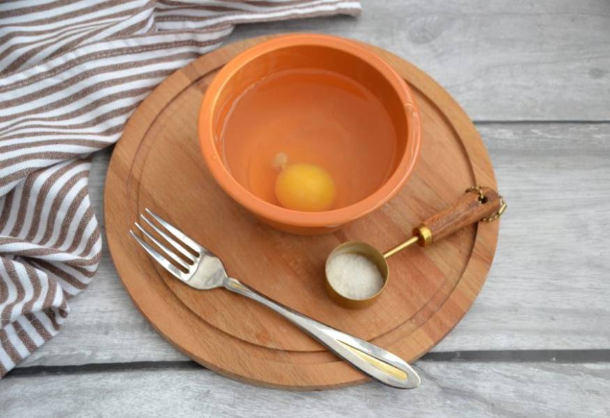 Для приготовления теста вбейте в воду яйцо, добавьте соль, взболтайте.