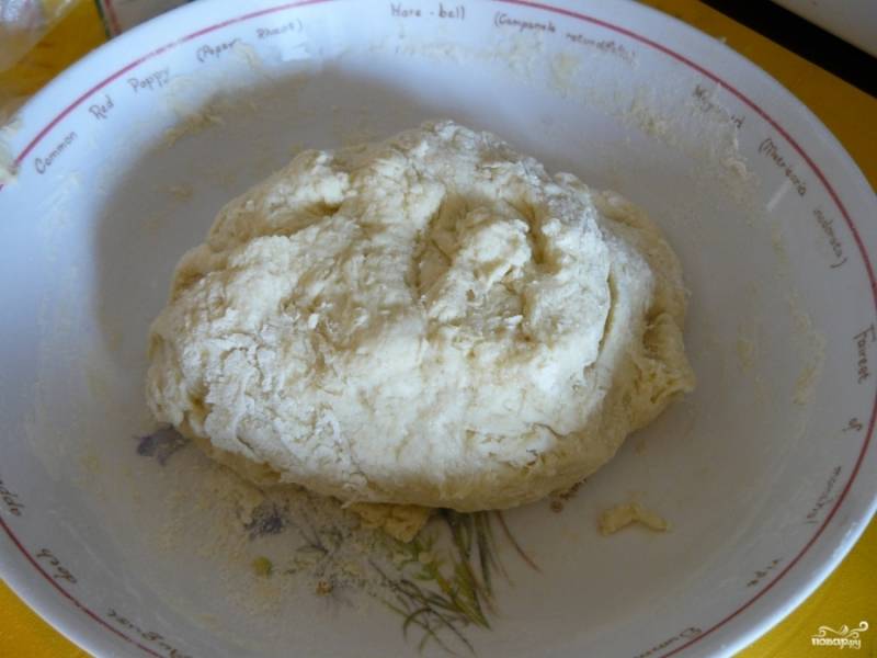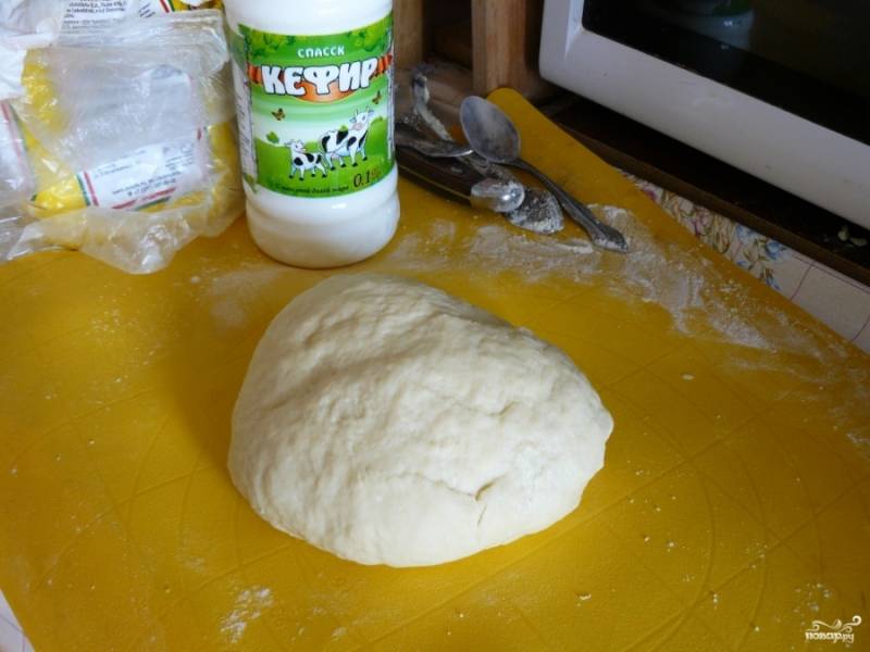 Тесто получается плотнее, чем дрожжевое. При необходимости, добавьте еще пару столовых ложек муки при вымешивании.