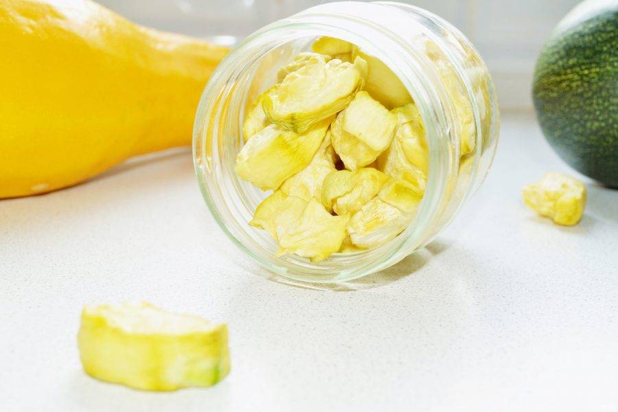 Когда вяленые кабачки готовы, остудите их и сложите в чистую и сухую баночку для хранение.