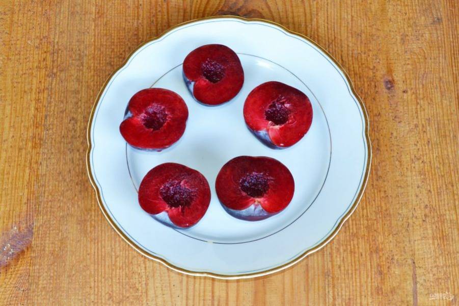 После ополосните, аккуратно разрежьте пополам и удалите косточки.