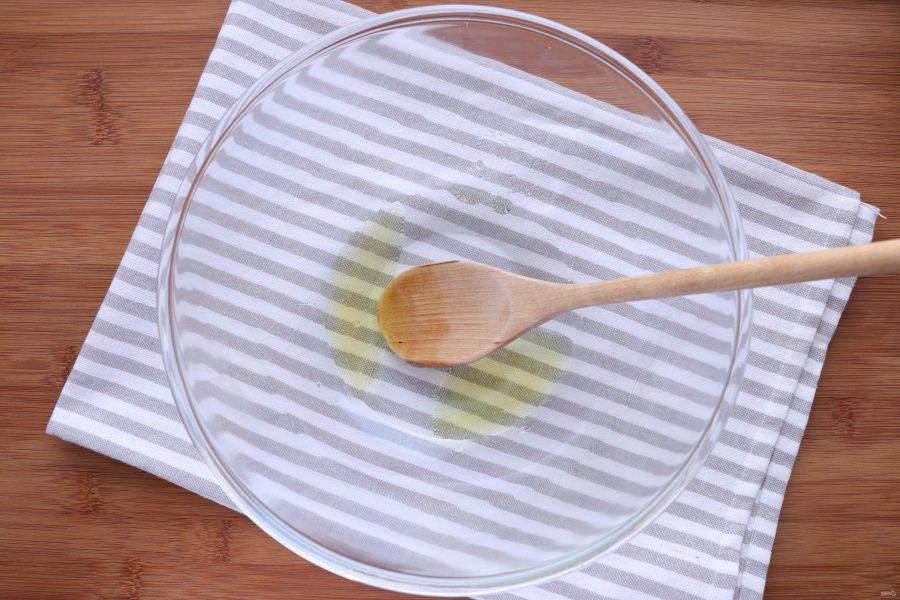 В миске соедините воду, щепотку соли, уксус и растительное масло. Указанное в рецепте количество масла равняется 1 столовой ложке и еще половине чайной.