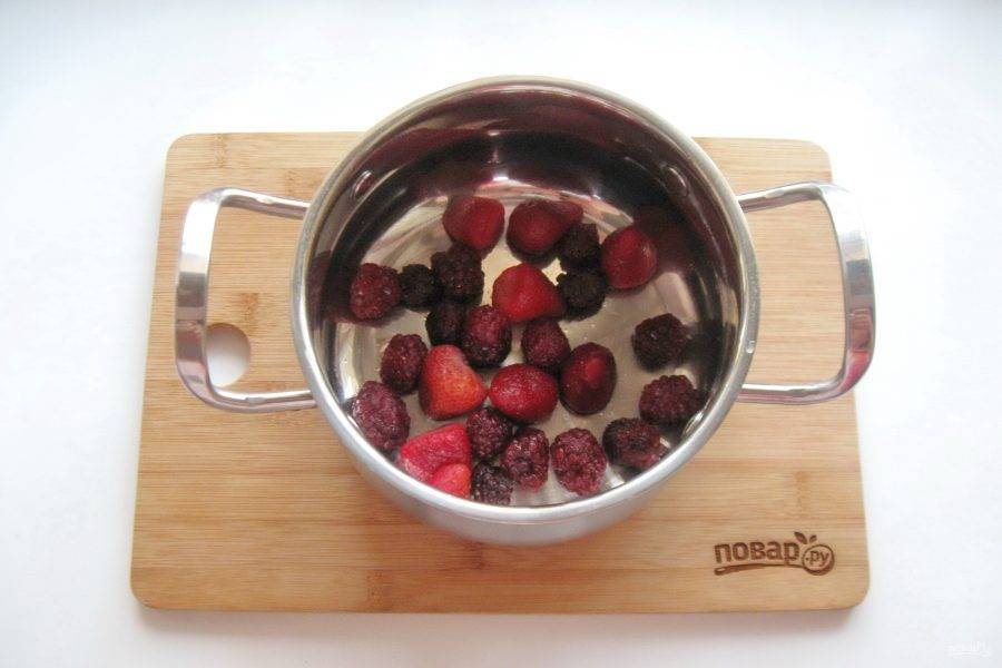 Ягоды помойте и выложите в кастрюлю. Залейте водой.