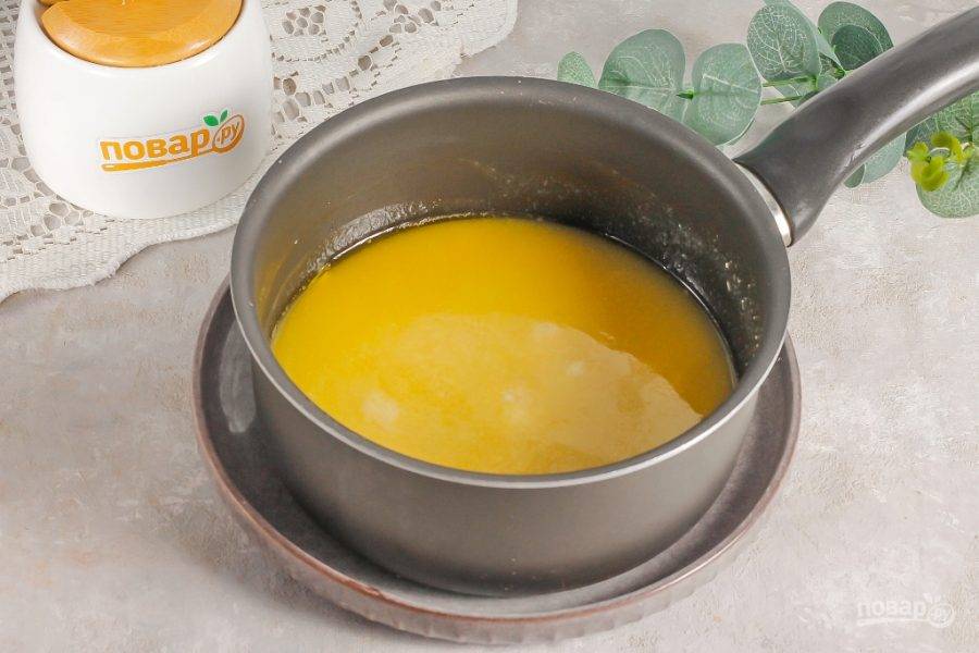 Удалите обертки шоколада и разломите его на кубики. Выложите их в ковш или в глубокую емкость, если будете прогревать шоколад на водяной бане. Если у вас есть сноровка, то можно прогреть шоколад в ковше, но он не должен свернуться. Поместите емкость на плиту и протомите на минимальном нагреве буквально 1-2 минуты. Вам не нужно расплавлять его полностью, а нужно лишь прогреть до расплавления.