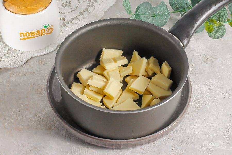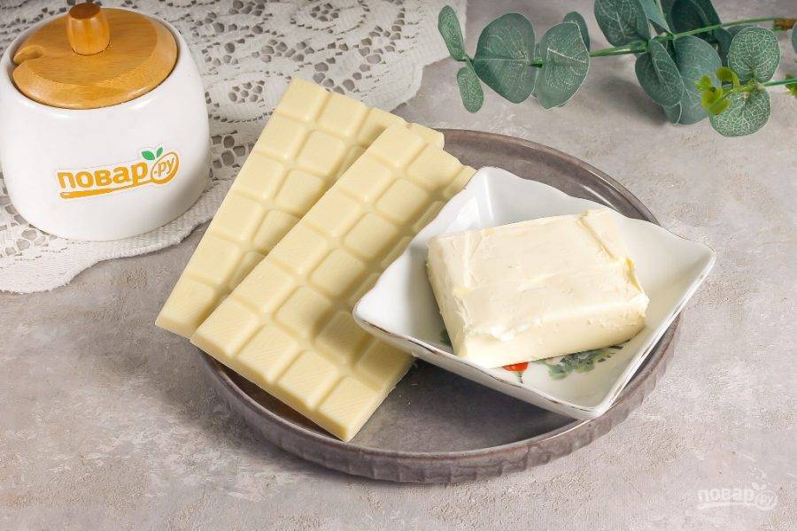 Подготовьте указанные ингредиенты. Белый шоколад выбирайте качественный, равно как и сливочное масло. Масло должно быть жирностью не менее 82%.