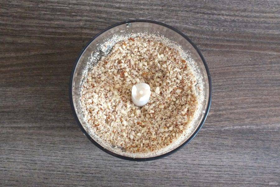 В чаше блендера измельчите миндаль. Чем мельче он получится, тем лучше.