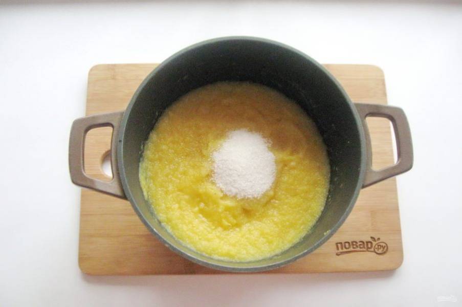 Добавьте сахар по вкусу, перемешайте и варите до загустения на самом минимальном огне.
