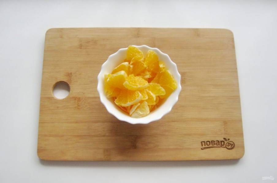Апельсин мелко нарежьте, удалив косточки. У меня был апельсин без косточек.