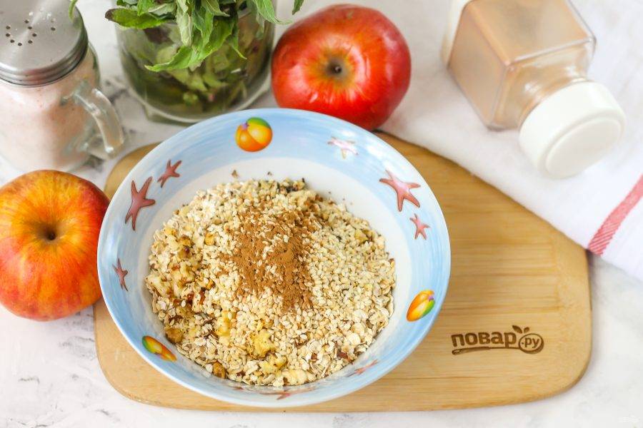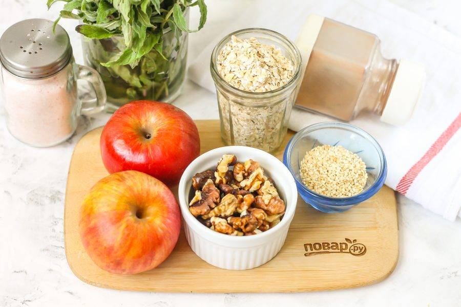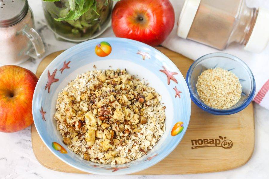Подготовьте указанные ингредиенты. Вы можете использовать овсяные хлопья быстрого приготовления или гранолу.