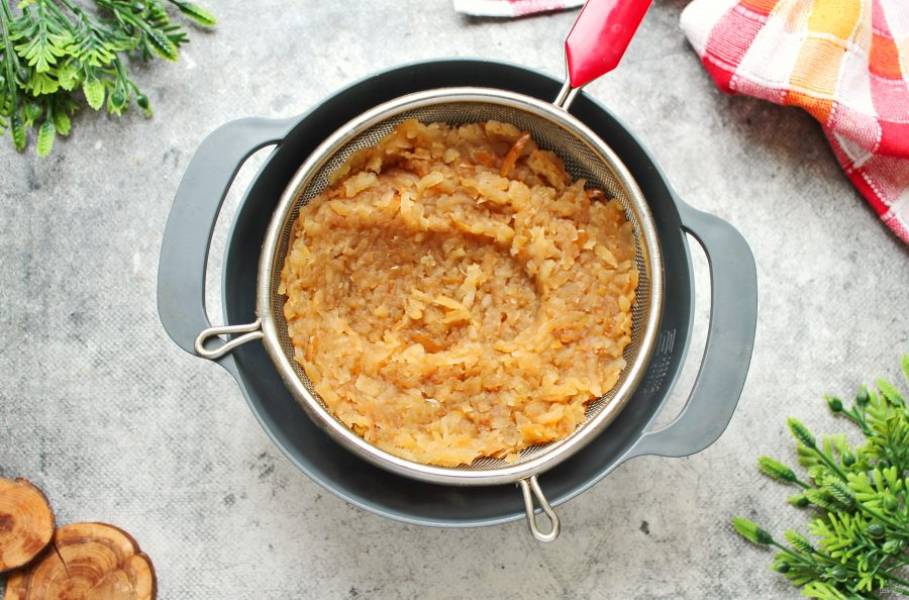В миску установите сито и застелите марлей сложенной вдвое. Перелейте содержимое без мякоти.
